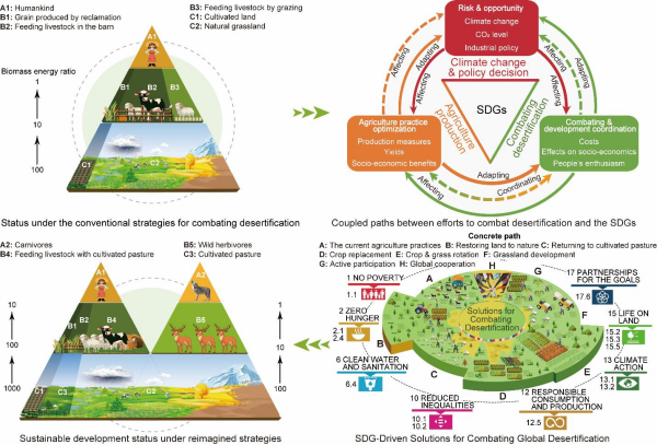 Figure: Conceptual framework illustrating SDG-oriented strategies for combating desertification. (Image by Prof. WANG Xunming’s group)