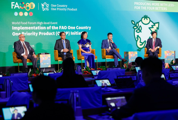 2025世界粮食论坛以“手拉手共倡多样美食,聚合力同创美好未来”为主题,“一国一品”倡议高级别实施会议旨在推动全球共同努力,加快实施“一国一品”(OCOP)倡议并扩大其影响。会议由FAO总干事特别顾问、全球“一国一品”行动秘书长夏敬源主持,FAO总干事屈冬玉、莱索托国王莱齐耶三世,以及孟加拉国、阿尔巴尼亚、阿尔吉利亚、墨西哥等多个国家的农业部长和官员参加会议。