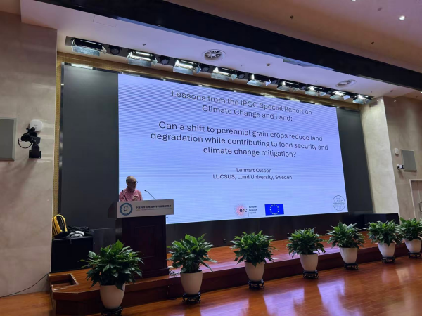 访问期间,Olsson教授作题为 “Lessons from the IPCC Special Report on Climate Change and Land: Can a shift to perennial grain crops reduce land degradation while contributing to food security and climate change mitigation?”的报告,系统阐述了在全球气候变化背景下土地退化、粮食安全与多年生作物农业转型之间的关系,并分享了《IPCC气候变化与土地特别报告》的最新见解。