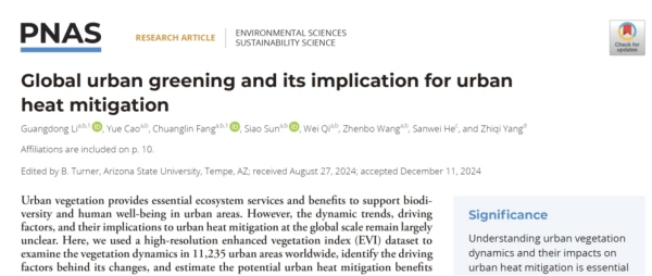 四、李广东、方创琳等在PNAS发文揭示全球城市变绿及对城市热缓解的意义