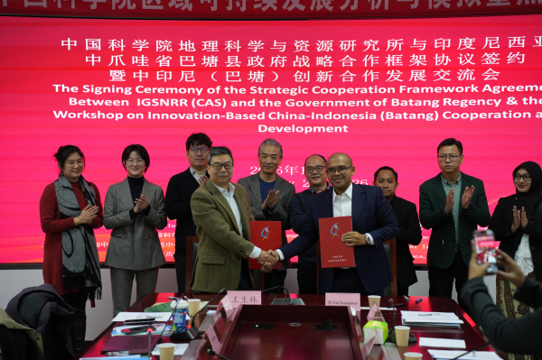 2026 年 1 月 23 日,中国科学院地理科学与资源研究所与印度尼西亚中爪哇省巴塘县政府在北京正式签署战略合作框架协议,并同期举办中印尼(巴塘)创新合作发展交流会。此次活动标志着中印尼在推进命运共同体建设背景下,科技创新与产业合作迈入深度协同的新阶段,为两国创新务实合作树立了新典范。
