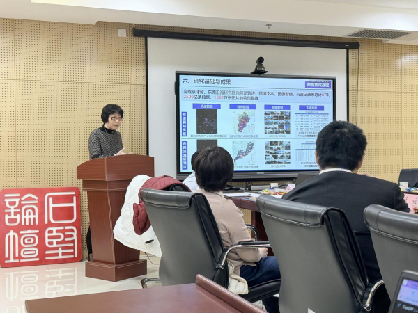 杜云艳就项目总体情况作全面汇报,指出在城市极端灾害风险持续加剧的背景下,项目将充分利用多模态地理大数据,围绕人、地、灾三者耦合关系,开展灾害智能感知、规律解析与韧性评估研究,重点聚焦京津冀和东南沿海典型灾害,力争形成从理论方法到实践应用的系统性成果。各课题负责人分别汇报了详细的课题研究内容与实施方案。王楠助理研究员汇报课题一“极端地理事件知识表达与智能感知方法”,重点介绍人、地、灾耦合系统概念框架构建、知识图谱构建、多模态数据集成以及智能感知方法研发等核心内容;易嘉伟副研究员汇报课题二“城市灾害响应特征解析与韧性评估模拟”,重点介绍极端事件下多尺度响应特征刻画、韧性驱动机制识别及过程化韧性评估模拟等研究内容;杜云艳研究员汇报课题三“城市极端灾害应急平台综合集成与应用示范”,介绍面向典型区域业务需求开展综合集成与示范应用的总体思路与推进计划。
