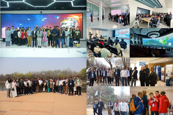 除学术报告外,会议还组织了青年活动、参访活动和展览活动,鼓励参会人员积极投身全民地球智能的基础设施建设与领域应用。3月28日上午,来自9个国家的26个青年学者以生态徒步形式考察奥海湿地,围绕地球观测、城市生态等议题深入交流,展现了青年群体在全球生态治理中的责任与担当。3月29日,来自11个国家的19位参会人员前往中国科学院空天信息研究院可持续发展大数据国际研究中心、华风气象传媒集团有限公司、气象科技展馆、国家卫星气象中心进行参观,并围绕地球大数据、气象科技与卫星监测等领域深入交流,全面感受了中国在相关领域的技术实力与开放合作姿态,为我国地球观测国际合作注入新动能。会议同期设置展览区,北京超图软件股份有限公司、长光卫星技术股份有限公司、东方航天港研究院、北京理加联合科技有限公司等单位携地球智能领域最新技术成果参展,集中展示了商业卫星应用、土壤碳通量监测、无人机等前沿技术,为与会代表提供了直观了解中国地球观测技术产业化进展的重要窗口。